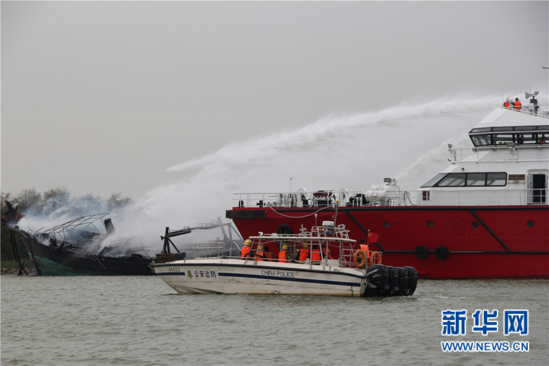 16日5时50分许,广东广州边防支队洪奇沥水上检查站接到110指挥中心指令:在广州南沙十六涌西水闸附近有渔船着火,有人落水,需要救助。接警后,这个站立即组织警力赶赴现场,并联动这个支队新垦边防派出所及驻地消防部门共同展开援救。