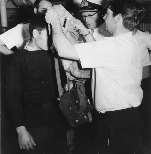 苏联水兵穿上救生衣。