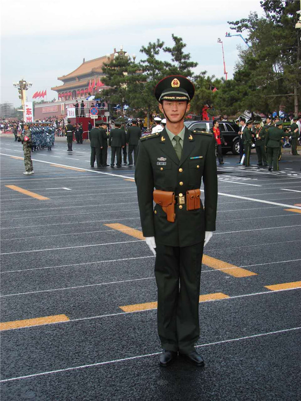 ↑内蒙古军区伊木河边防连连长杜宏烈士生前参加2009年国庆60周年大阅兵。(图片由内蒙古军区伊木河边防连提供)
