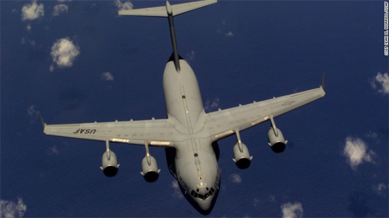 这款四发远程运输机1993年装备美国空军,担负人员和物资运输任务,单机可运载102名士兵或77.6吨货物。美国空军列装187架C-17运输机,空中国民警卫队和预备役部队分别列装12架和14架。