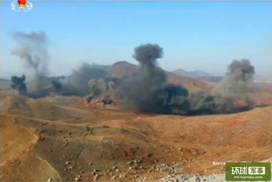 朝军大演习山顶上火箭炮横飞