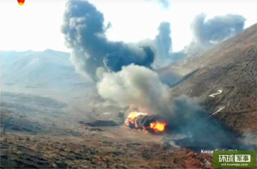 朝军大演习山顶上火箭炮横飞