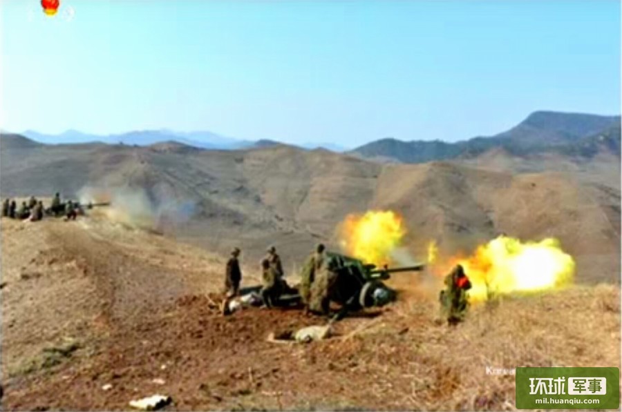 朝军大演习山顶上火箭炮横飞