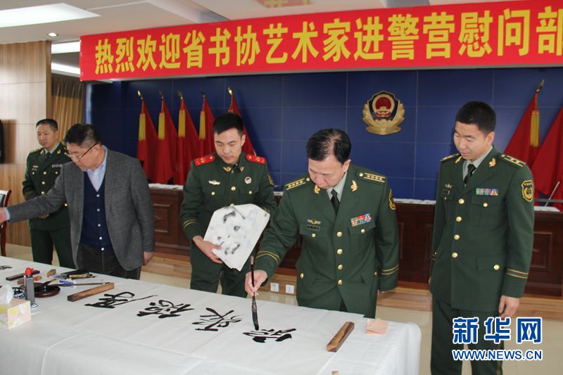 书法家进警营 挥毫泼墨送祝福