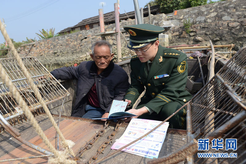 边防官兵上船头为渔民办证