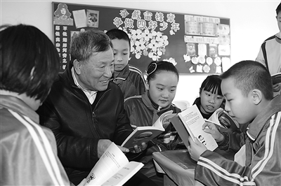 雷锋生前战友乔安山给孩子们讲雷锋故事。赵岩摄
