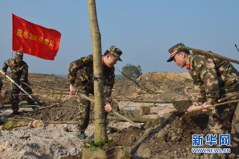 为倡导绿色环保理念,3月1日,广东边防总队茂名边检站组织官兵前往驻地生态公园参加义务植树活动。