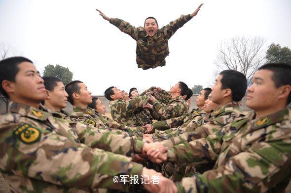 解放军雪地上钻火圈爬过火障