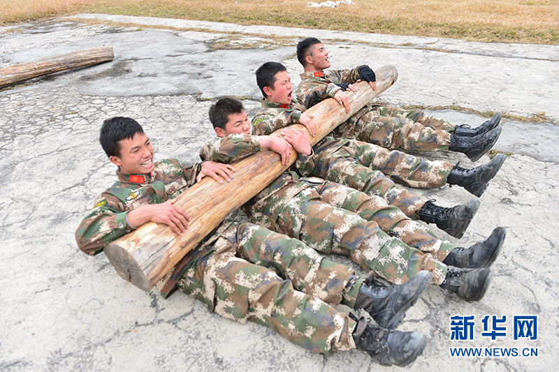 团队抱圆木仰卧起坐训练