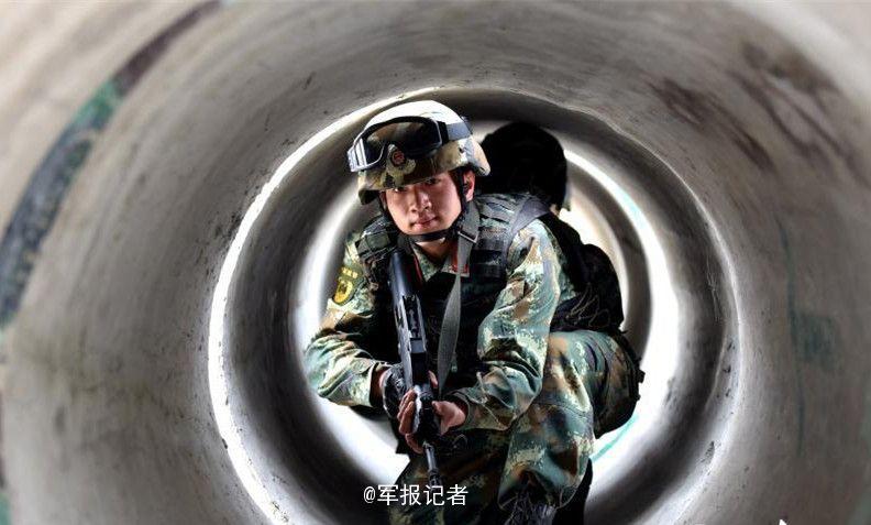 广西武警武装“蹦极” 钻管道爬“天梯”