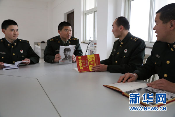 业余时间,官兵们阅读雷锋书籍,讨论雷锋精神。
