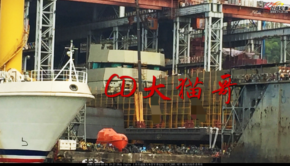 近日,网友在国内某军工造船厂拍摄到了一艘在建的舰船,从外形上看并非海军部队现役的军舰型号,在同一船坞在建的是一艘054A型护卫舰。(鸣谢:超大军事-fzgfzy)