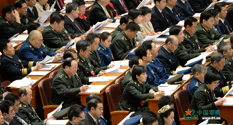 军事记者镜头下的十二届全国人大四次会议开幕式
