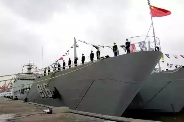 2016年1月12日入列。天目山舰是我国自行研制设计生产的新型坦克登陆舰,是我海军近年来建造和装备的新型坦克登陆舰,舰桥由开放式改为封闭式,有较好的隐身性,同时直通甲板的设计更方便两栖登陆装备的快速装载和通过。
