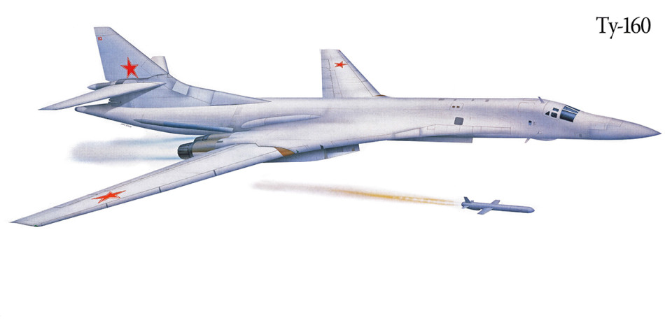 图-160战略轰炸机发射巡航导弹。