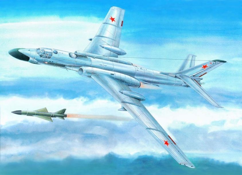 苏联图-16轰炸机发射巡航导弹绘图。