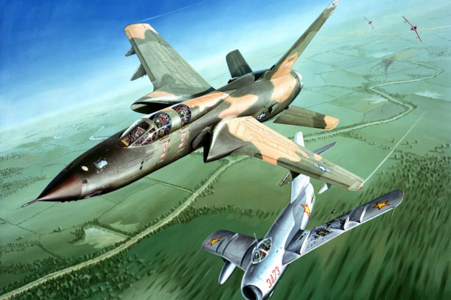 美军F-105战斗轰炸机击落越共米格-17战斗机。