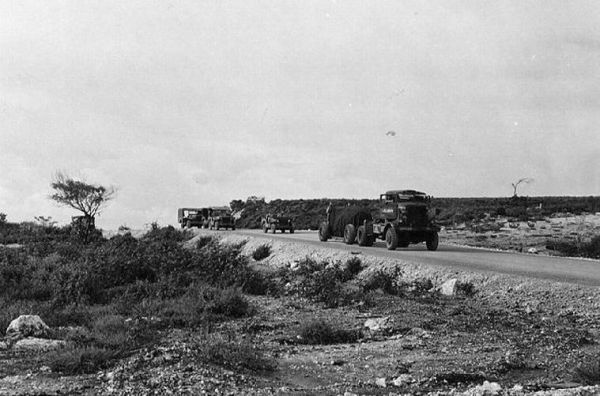 在严密保护下,组装完成的原子弹被送往机场。