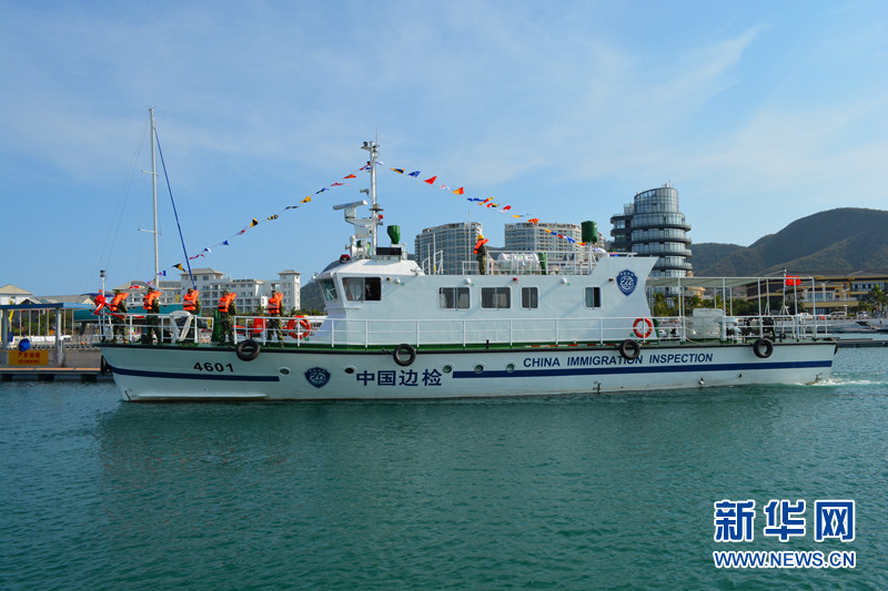 4日,海南边防总队三亚边检站首艘4601巡逻艇顺利抵靠三亚半山半岛帆船港码头。