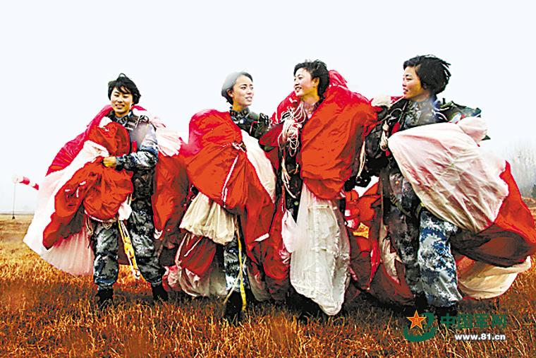 “三八”国际妇女节前夕,空降兵某部女子空降侦察引导队的战士们在雨雾天气进行跳伞训练。这个引导队是空降兵部队一支重要的战斗分队,要完成气象观测、侦察引导、夜间跳伞等空降引导保障任务,已成为空降兵部队“空中能跳、地面能打、空中能侦、精于引导”的精锐力量。 蒋 龙摄