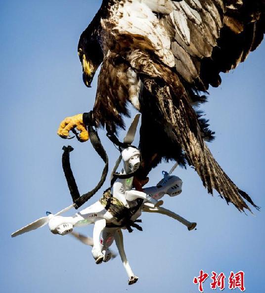 当地时间2016年3月7日,荷兰,荷兰警察和一家名为“空中防卫”的公司合作,训练鹰在空中抓住无人机。据报道,包括伦敦在内的城市警察们都在考虑训练鹰来拦阻“敌对的无人机”。