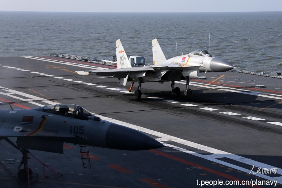 辽宁舰航母歼15带弹训练猛照曝光 夜幕下出动
