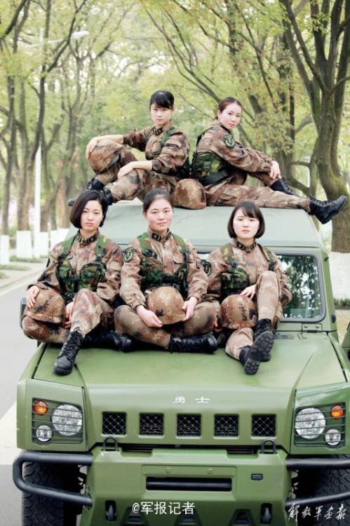 点赞!靓丽女兵们勇士车顶上摆POSE
