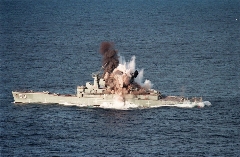 靶船的命运:澳军退役战舰被重型鱼雷炸断沉没