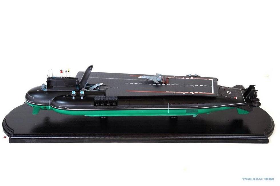 潜艇左侧是奥斯卡级巡航导弹核潜艇的一部分,能齐射反舰导弹