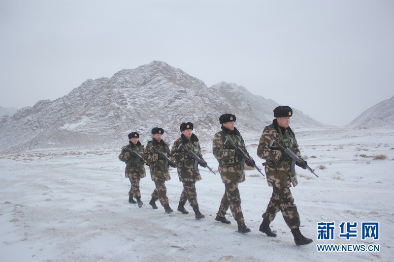 10日,甘肃酒泉边防支队明水边防派出所官兵克服寒冷天气影响,对辖区重点路段进行不间断武装巡逻。