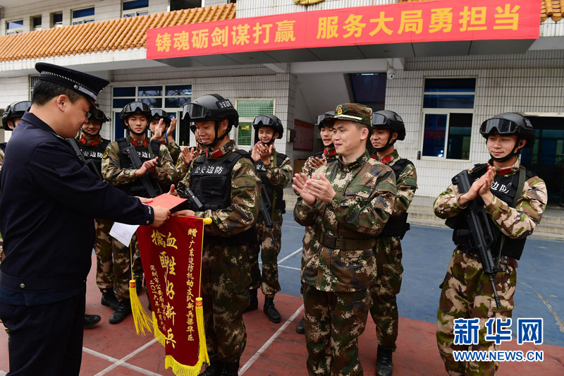 未满20岁,入伍不到半年,面对嫌疑人,他毅然绝然冲了上去;遇到嫌疑人抵抗,眼看利刃就要出鞘,他临危化险。近日,深圳市南头派出所副所长杨子樊一行将一面印着“血性好新兵 擒匪好本事”字样的锦旗、奖励金、表扬信送到广东边防总队机动支队三大队十二中队营区,感谢和表扬梁华乐擒获一名抢劫惯犯。