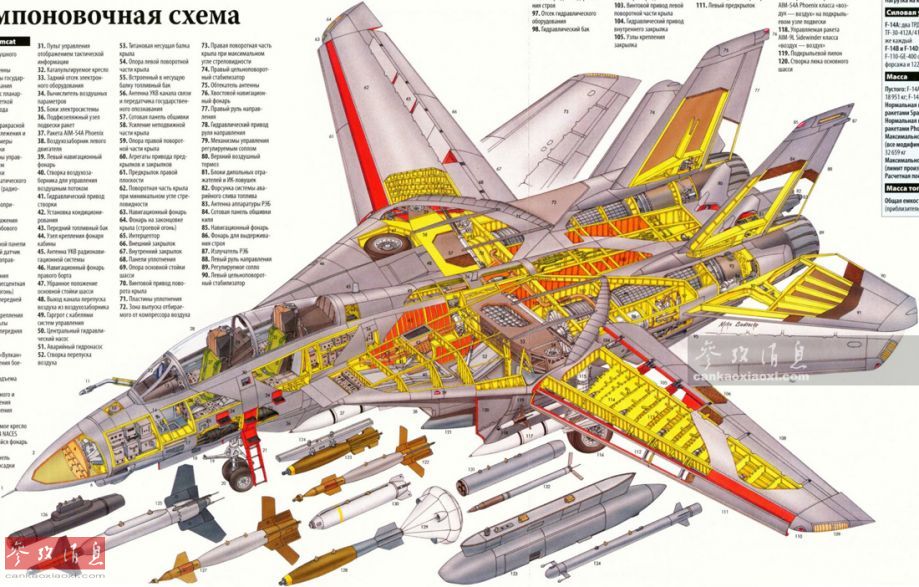 F-14重型舰载战斗机剖面图。
