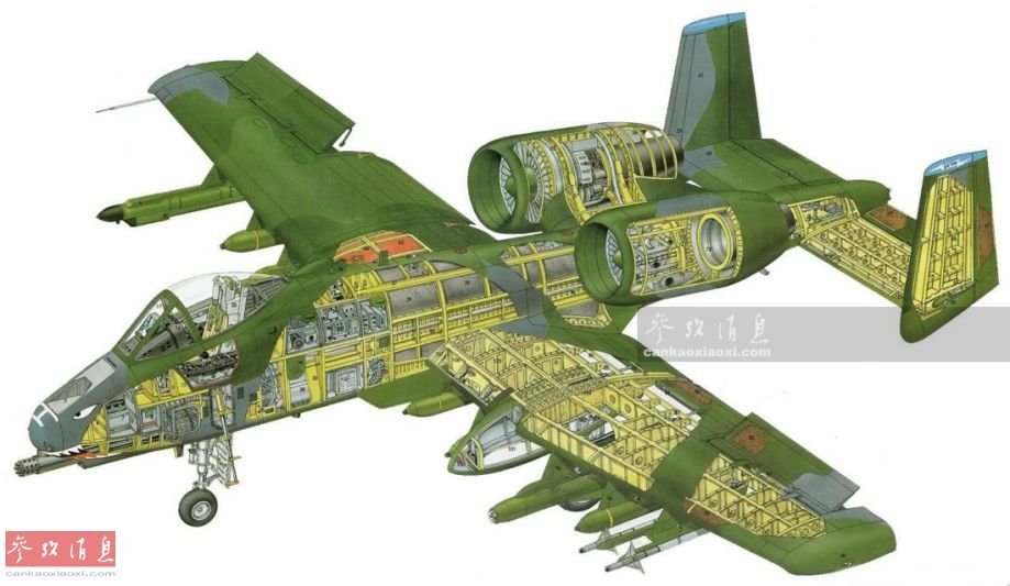 美军A-10攻击机剖面图。