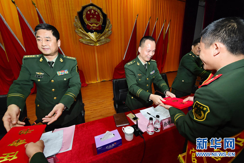 11日,广东边防总队机动支队举行士官讲评大会,对这个支队组建3年来的士官队伍建设进行讲评,并对66名优秀士官进行表彰,41名优秀士官正式受领任命书,担任代理排长、教员、代理司务长等职务。驻地已婚士官家属受到邀请,作为贵宾参加讲评大会,共同见证丈夫、父亲的璀璨时刻。