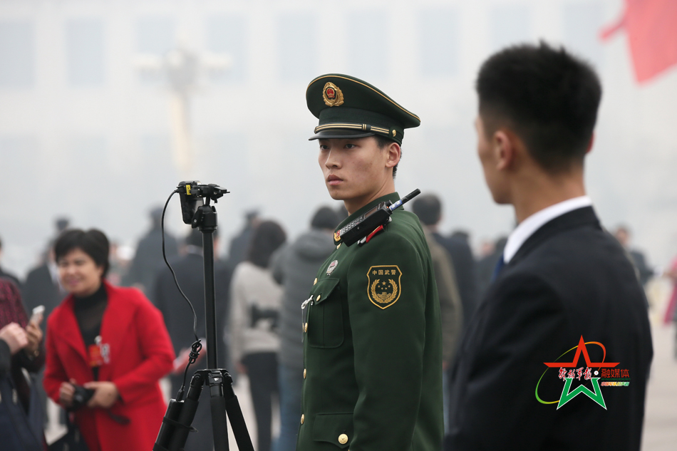 担负今年两会安保执勤任务的武警官兵,以满腔的政治热情和良好的精神风貌,守护在和谐的春风里,在天安门广场上形成了一道靓丽的风景线。图为武警战士在人民大会堂前执勤。解放军报记者 李三红摄
