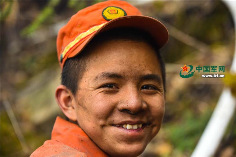 上等兵黄卓操喜欢向战友秀自己的两个“小酒窝”。(迟永赛 摄)