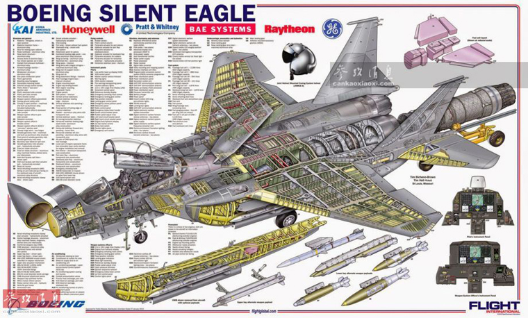 美军F-15SE“沉默鹰”隐身战斗机剖面图。