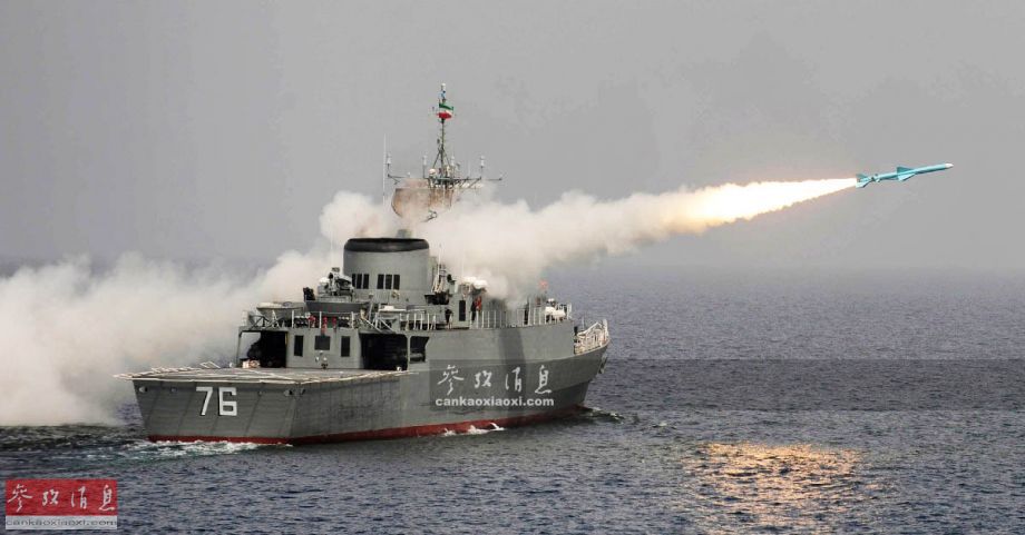 据悉,“达马万德”号配备1门76毫米“奥托·梅莱拉”舰炮、1门40毫米“博福斯”舰炮,另配“胜利”(C-802反舰导弹的伊朗国产化型号)反舰导弹及近程防空导弹系统,并设有直升机平台与深水炸弹发射装置。图为伊朗军舰发射反舰导弹。