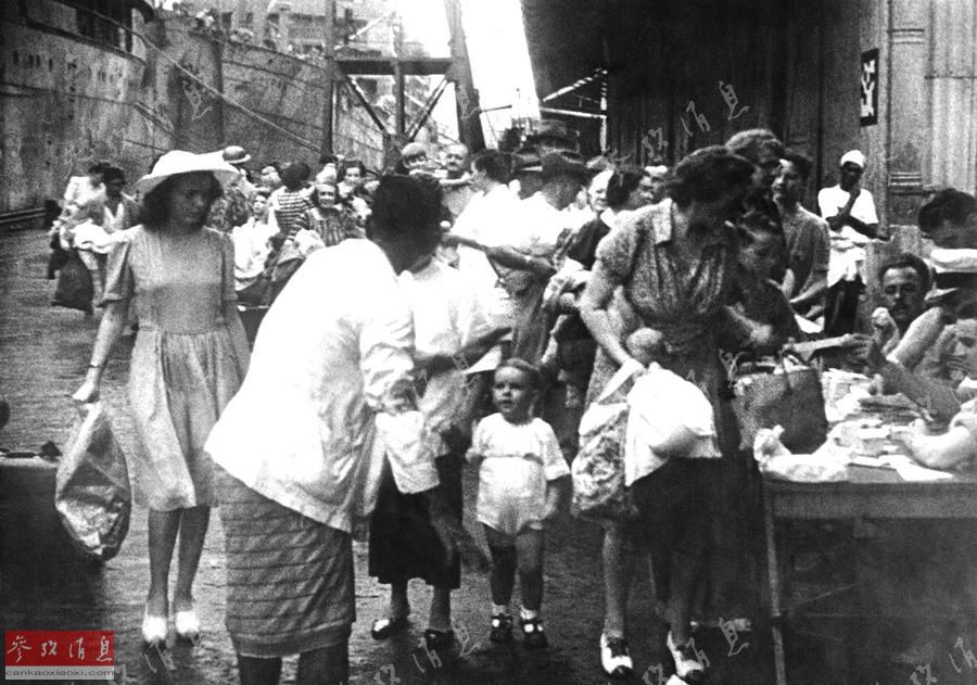 图为新加坡某英军堡垒外,大批欧洲侨民拖家带口,准备搭乘船只撤离新加坡,此时日军已兵临城下,摄于1942年3月9日。