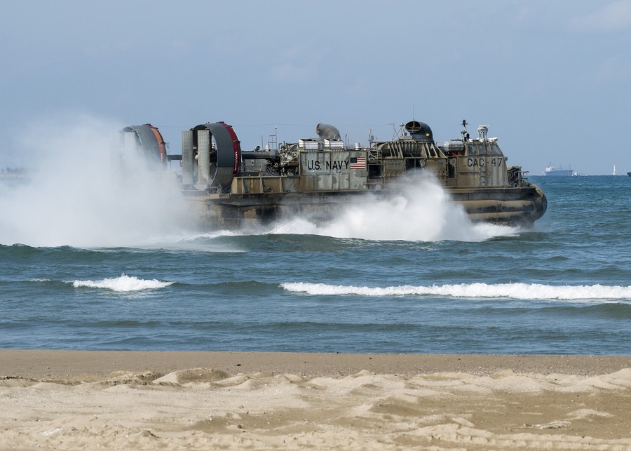 在韩国SBS电视台13日的电视画面中可以看到,在设想的“朝鲜某登陆地点”,随着美军4.5万吨级大型登陆舰出现在近海,韩美军队开始大规模抢滩作战。韩美联军首先用舰炮清除障碍物,装甲车则在烟雾掩护下开始强行登陆,各类攻击直升机展开空中掩护。报道称,美韩计划持续演练如何进攻包括平壤在内的朝鲜内陆地区的核心要害地区。图为3月10日,韩美“双龙”联合登陆演练现场。