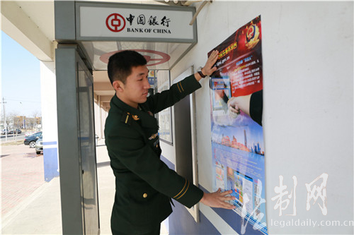 图为高沙岭边防派出所张贴民生服务平台宣传海报