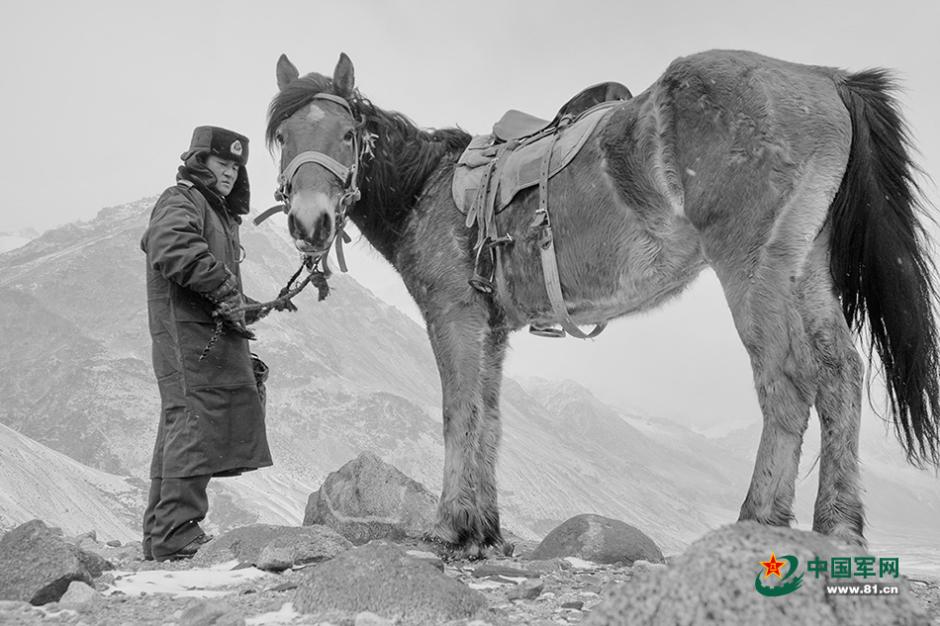 和平年代边关无战事,那些曾经驰骋沙场的战马却从不曾离开边关。2009年11月,帕米尔高原瓦罕走廊一位年轻的战士与“无言战友”矗立在风雪中。