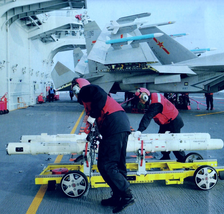 难得一见:歼15在航母上着舰钩住拦阻索瞬间