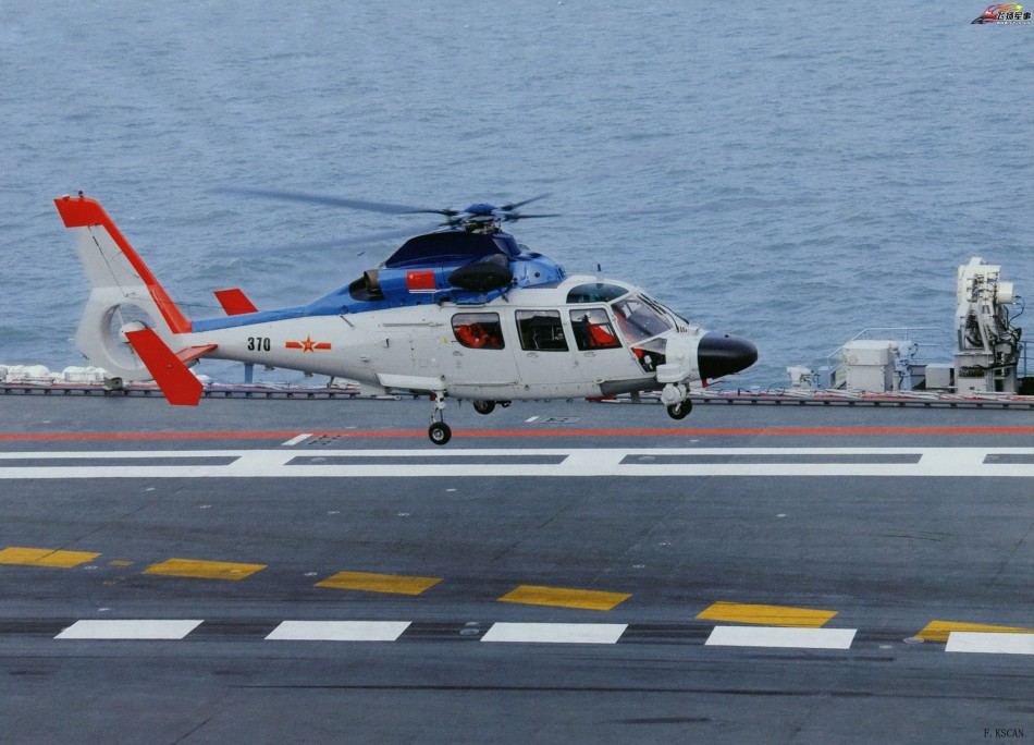 战场救护直升机降落辽宁号航母