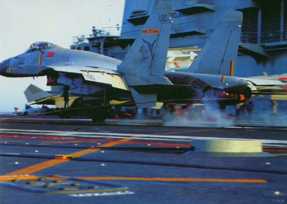 近日,海军歼15舰载战斗机在辽宁舰航母上的着舰画面在网络上曝光,画面精准地抓住了歼15舰载机着舰尾钩挂上拦阻索的瞬间,十分精彩。