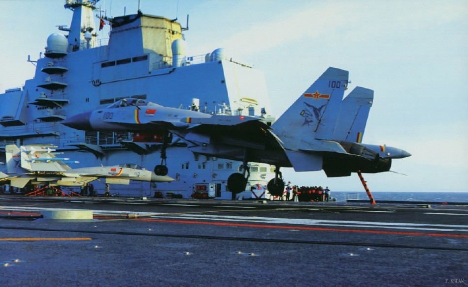 近日,海军歼15舰载战斗机在辽宁舰航母上的着舰画面在网络上曝光,画面精准地抓住了歼15舰载机着舰尾钩挂上拦阻索的瞬间,十分精彩。