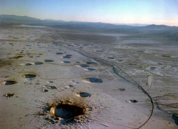 资料图:美国核试验炸出的大坑。