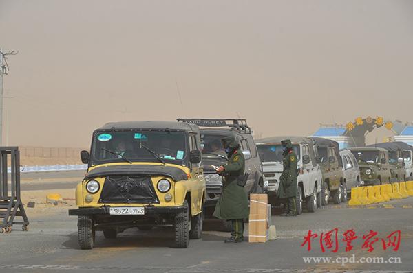 3月28日,内蒙古二连浩特市遭遇沙尘暴天气,大风扬沙伴随着强降温天气给口岸出入境人员和车辆通关带来了极大不便,内蒙古边防总队二连边防检查站积极采取有效措施全力做好沙尘暴天气下边防检查工作。
