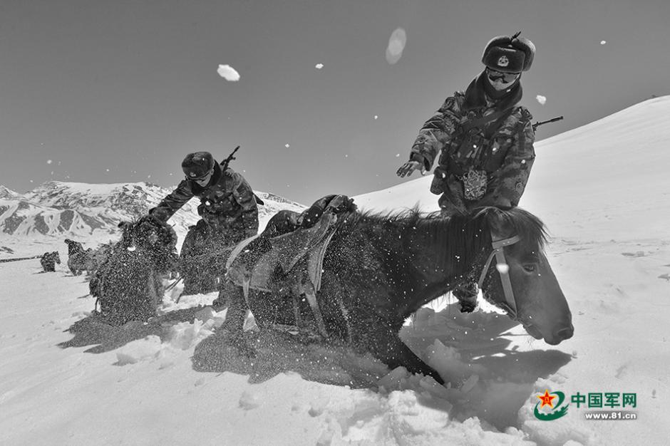 边关永远是冰雪的世界。2015年3月,普兰边防连巡逻官兵踏着近1米厚的积雪艰难行进。