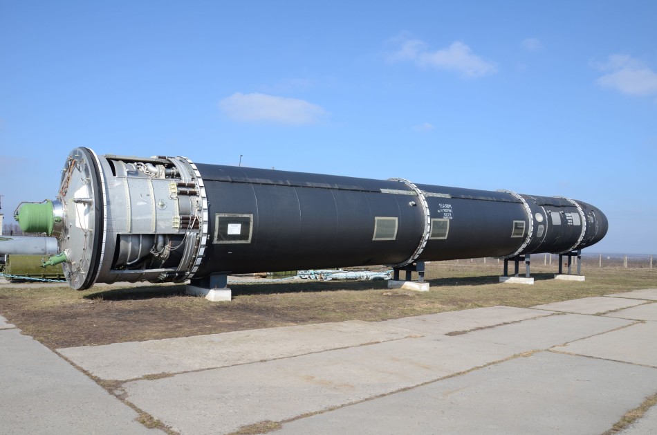 博物馆成列的SS-18洲际弹道导弹(包括其尾部的燃气发生单元),之所以陈列它是因为它是乌克兰设计制造的。